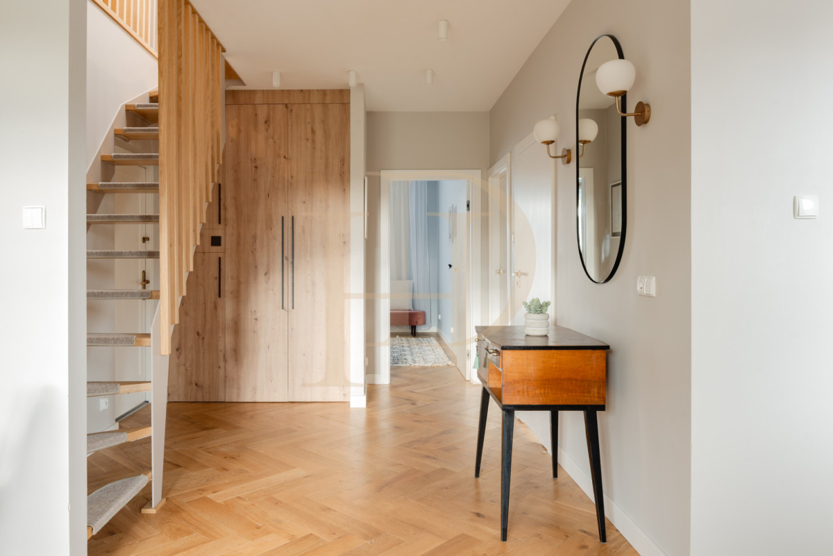- przestronny korytarz z zabudowami oraz schody prowadzące na drugi poziom.